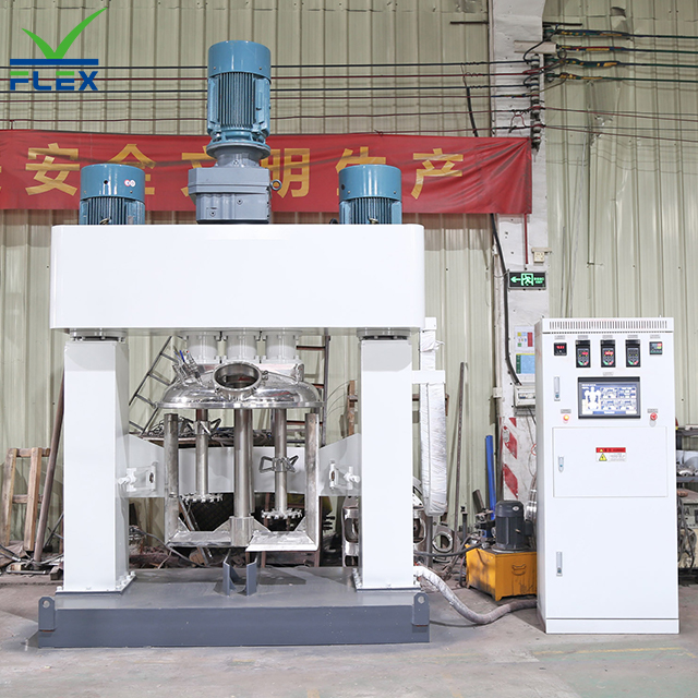 Start the dispersing mixer for high-speed dispersion, then switch to low-speed vacuum mixing. The integrated vacuum system will remove air bubbles automatically. Monitor the torque and temperature display closely; adjust parameters promptly if the material becomes too thick to ensure uniform mixing.