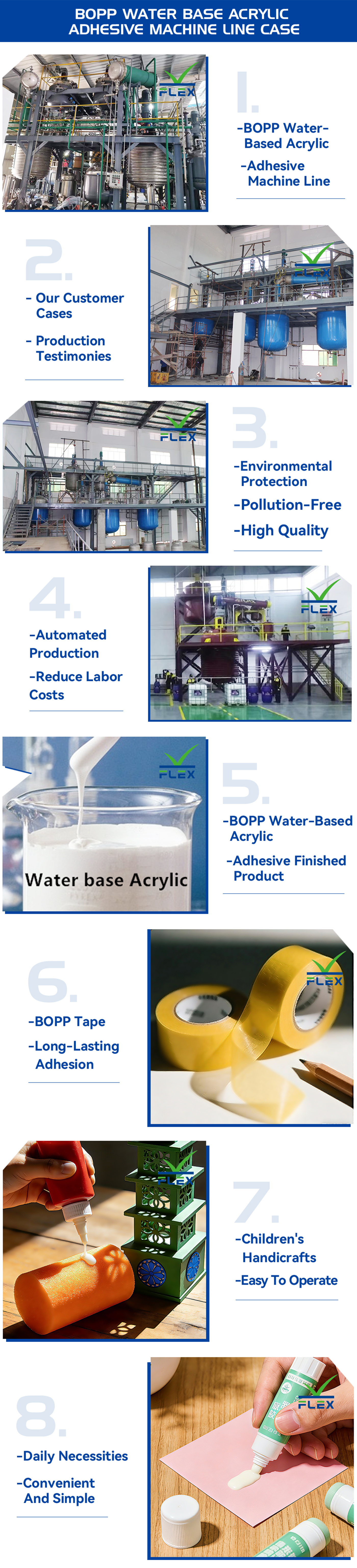 FLEX Machinery Co., Ltd. not only supplies customers with high-quality and cost-effective Water base acrylic adhesive machine line, but also offers formula technical support, such as Water-based acrylic adhesive tape, children's handicraft adhesive , etc.